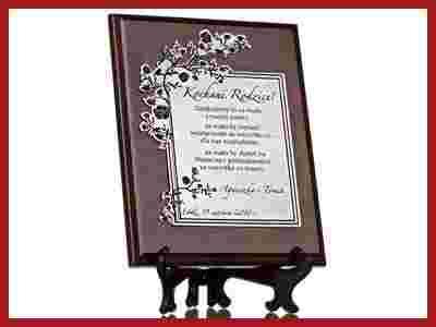 Podziękowanie wykonane jest z wysokiej jakości podkładu drewnianego oraz grawerskiego. Jest gotowe aby powiesić je na ścianie czy postawić na półce/biurku dzięki szykownemu stojakowi który otrzymasz zupełnie GRATIS. Kupując na tej aukcji dostajesz jedno grawerowane podziękowanie. Niepowtarzalny styl i jakość wykonania na długo zapadną w pamięć obdarowanej osobie. Jest to profesjonalnie zrobiony POLSKI produkt, wykonany na wysokiej jakości maszynach. Kupując u nas masz gwarancje jakości której nie zapewni Ci żaden inny sprzedający.