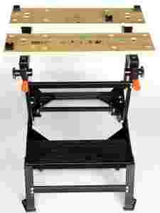 Stół roboczy o uniwersalnym zastosowaniu, łatwy w przechowywaniu i nie zajmujący wiele miejsca dzięki systemowi szybkiego składania. Idealny dla majsterkowicza, posiada dwa pokrętła do rozsuwania blatu, umożliwia mocowanie przedmiotów o różnych kształtach
