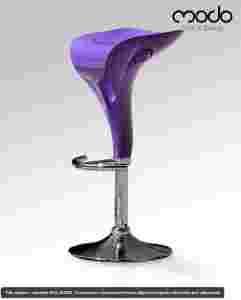 Chromowana podstawa z regulacją wysokości, podnóżkiem oraz siedzisko hokera uformowane w oryginalny kształt. Piękny i wygodny hoker idealnie pasuje do każdego wnętrza, do domowej jadalni, czy klubowej sali. Dużym plusem hokerów jest ich rozmiar- zajmują mniej miejsca niż krzesła, w związku z czym zaoszczędzimy na przestrzeni. Całość prezentuje się elegancko i fantazyjnie. Stopa umieszczona jest na teleskopie z chromowanego metalu. Intensywny fiolet zwraca na siebie uwagę i ubarwia pomieszczenie. Nowoczesny hoker doskonale komponuje się z meblami klasycznymi jak i modernistycznymi.