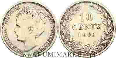 Holandia, 10 centów, 1905 rok, Ag