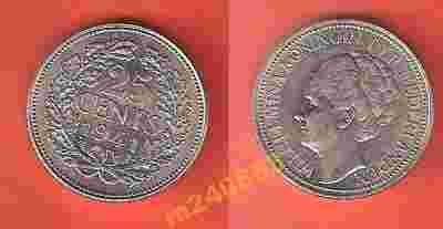 Holandia 25 c. 1941 Wilhelmina - srebro