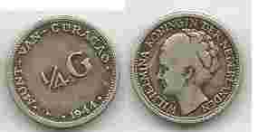HOLANDIA CURACAO 1/4 GULDEN 1944 Ag