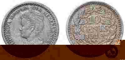Holandia - moneta - 10 Centów 1919 - SREBRO