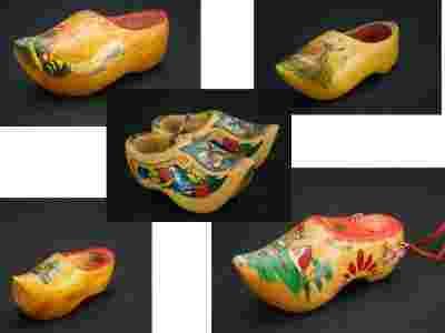 Przedmiotem licytacji jest kolekcja 6 szt drewnianych holenderskich bucików..