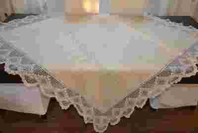HomeSweetHome-Śliczny obrus z koronką/len 150x150