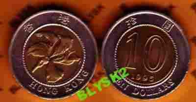 HONG KONG-CHI./KM-70/ 10 DOLLARS 1995 r. Bimetal