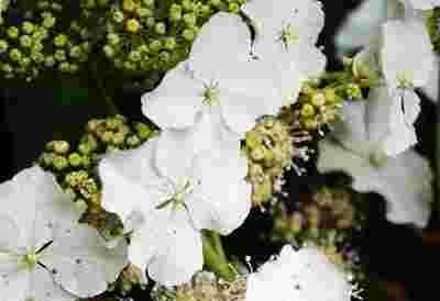 Kwiaty białe, w długich, okazałych wiechach, rozwijają się od wczesnego lata aż do pierwszych przymrozków (lipiec-wrzesień).