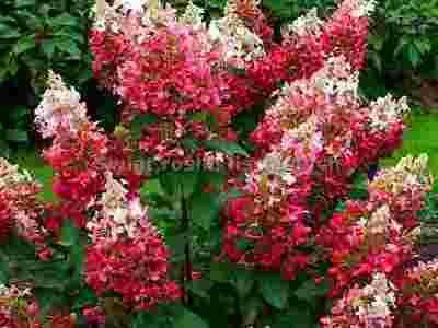Rzadka odmiana hortensji bukietowej. Miłośnicy tego gatunku cenią ją za mrozoodporność ( do -30 stopni), a dzięki temu, za coroczne bujne kwitnienie oraz za niespotykane zabarwienie ogromnych kwiatów. Kwiatostany pojawiają się na tegorocznych pędach, w związku z tym należy tę hortensję co roku przycinać, żeby uzyskać pożądany kształt krzewu oraz większą ilość nowych czerwonych pędów, na których pojawią się 20-centymetrowe początkowo białe stożki kwiatowe. Okres kwitnienia jest długi (od sierpnia do października) i w tym czasie kwiaty przebarwiają się, zaczynając od dolnej części stożka, na piękny malinowy kolor, który przyciąga uwagę. Najpiękniej wybarwiają się krzewy posadzone w lekko kwaśnej, wilgotnej, żyznej i przepuszczalnej glebie. Jest to odmiana, która toleruje słońce, pod warunkiem, że nie ma go za dużo. W naszych warunkach odmiana ta dorasta do ok.1,5 m. Liście ma duże, ciemnozielone.