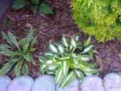 Są to te dwie duże hosty ze zdjęcia na pierwszym planie-real foto-od nich będą brane kłącza.