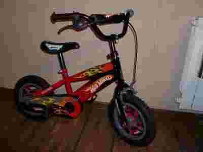 Oryginalny rowerek na licencji. Rower naprawdę porządny, szerokie, bezpieczne koła ( najszersze jakie trafilismy w rowerku 12" ) porządna, solidna rama, niespotykany wygląd. Synek jeździł na nim jeden sezon , czyli 4 miesiące, co widać po stanie opon. Stan bdb, jedyne ślady użytkowania są na kierownicy, wiadomo rysek na kierownicy przy dziecku nie da sie uniknąć. Teraz syn jeżdzi juz na 16 i również kupiliśmy hot wheels.