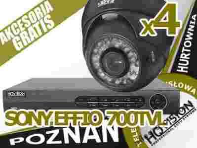 4 KOLOROWE, ZEWNĘTRZNE KAMERY 1/3” SONY, 700 LINII TV Z PROMIENNIKAMI PODCZERWIENI W KOPUŁKOWYCH OBUDOWACH WANDALOODPORNYCH