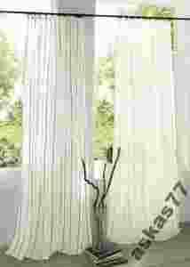 Zasłona z łatwej w pielęgnacji, wysokogatunkowej tkaniny o fakturze lnu, z wzorem w podłuzne kontrastowe paski; zawieszana na taśmie marszczącej.