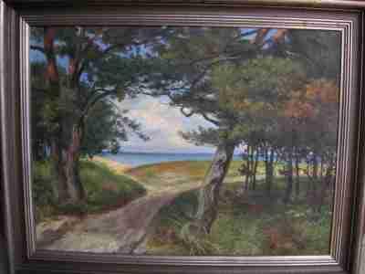 Kompozycja, którą wystawiam na licytację, przedstawia ulubiony temat artysty- mianowicie pejzaż z okolic Królewca.