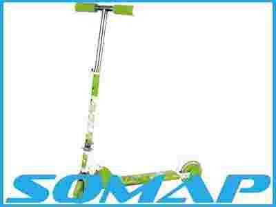 Nowoczesna grafika, dynamiczny modny design przyciągający uwagę, wykonana w 50% z lekkiego stopu aluminium, dzięki czemu konstrukcja jest lekka i bardzo stabilna. Mocne plastikowe felgi z kauczukowymi oponami 120mm, osadzone na łożyskach ABEC 5, które gwarantują wysoką precyzję wykonania, połączenie obu cech, czyni hulajnogę bardziej zwrotną i stosunkowo szybką. Tylny błotnik pełniący zarazem rolę hamulca nożnego. Rączki kierownicy pokryte miękką pianką, wyjmowane i połączone ze sobą elastycznym cięgnem zapobiegającym zgubienie w czasie transportu. Kierownica z regulowaną wysokością na klamrowym zacisku, wykładzina podestu z ciekawą grafiką, zapewnia bardzo dobrą przyczepność nogi. Zaletą hulajnogi jest jej niezwykle szybka możliwość składania i rozkładania, bez użycia jakichkolwiek narzędzi.