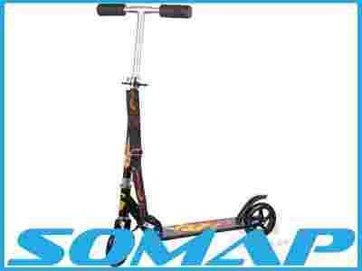 Wykonana w 50% z lekkiego stopu aluminium, dzięki czemu konstrukcja jest lekka i bardzo stabilna. Odporna na mechaniczne uszkodzenia oraz wyposażona w taśmę do przenoszenia. Mocne plastikowe felgi z kauczukowymi oponami 145mm, osadzone na łożyskach ABEC 7 RS, dzięki którym gwarantujemy cichą i przyjemną jazdę. Tylny błotnik pełniący zarazem rolę hamulca nożnego. Rączki kierownicy pokryte miękką pianką, wyjmowane i połączone ze sobą elastycznym cięgnem zapobiegającym zgubienie w czasie transportu. Kierownica z regulowaną wysokością na klamrowym zacisku, antypoślizgowa wykładzina podestu z ciekawą grafiką, zapewnia bardzo dobrą przyczepność nogi. Zaletą hulajnogi jest jej niezwykle szybka możliwość składania i rozkładania, bez użycia jakichkolwiek narzędzi.