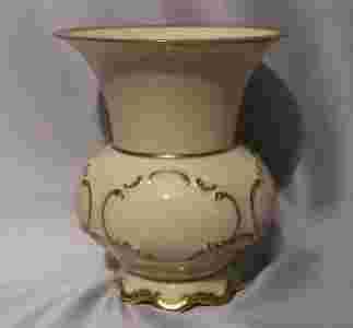 Wazon z porcelany ecru. Efektowna forma, złocenie i reliefy.