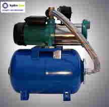 Pompa z osprzętem sterującym pracą składającym się z wylącznika ciśnieniowego (nastawa fabryczna zał/wył = 1,4-2,8atm), manometru, wszystko polączone z pompą za pośrenictwem złącza 5-cio drożnego, okablowaneelektrycznie, oraz zbiornika przeponowego opojemności 24L oraz węża elastycznego zbrojonego z kolanem do polączenia pompy ze zbiornikiem.
