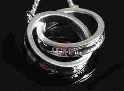 Dwie połączone obrączki o średnicy 2 cm.