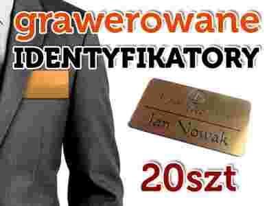 Przedmiotem aukcji jest zestaw 20szt identyfikatorów wykonanych z laminatu grawerskiego z wyciętymi laserowo napisami wg. zamówienia Klienta.