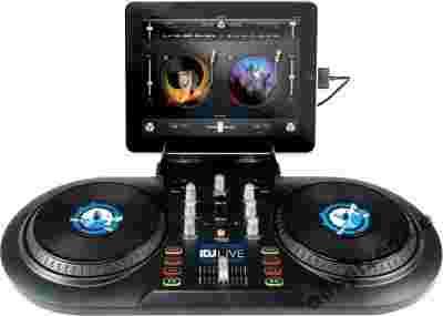To najprostszy sposób aby zamienić swojego iPhone’a bądź iPada w prawdziwy sprzęt DJ’ski.iDJ Live jest kontrolerem dla każdego początkującego DJ’a bądź miłośnika muzyki. Wystarczy, że posiadasz odpowiednie oprogramowanie DJ’skie od Algoriddim czy jakiekolwiek inne obsługujące komunikaty MIDI. Numark współpracował z Algoriddim, developerami bardzo popularnego oprogramowania DJ’skiego, aby stworzyć aplikację specjalnie do wykorzystania z kontrolerem iDJ Live. Aplikacja ta nazywa się „Djay for iPad” i jest dostępna pod tym adresem:http://www.algoriddim.com/djay-ipad Dzięki niej możesz miksować swoją muzykę na żywo, nagrywać swoje sety bądź ustawić opcję Automix oraz pozwolić aby aplikacja sama zajęła się wyrównywaniem beatów. Łatwość obsługi oraz wsparcie funkcji multitouch powoduje, iż iPad staje się sprzętem DJ’skim nowej generacji i przyniesie wiele frajdy zarówno początkującym jak i tym zaawansowanym DJ’om. Oprogramowanie Algoriddim Djay jest dostępne na App store. Oprogramowanie kontrolowane jest przez dwa duże talerze oraz sekcję miksera z crossfaderem oraz niezbędnymi potencjometrami znajdującą się pośrodku urządzenia. Design urządzenia jest wzorowany na standardowym setupie dwóch gramofonów oraz miksera, dzięki czemu można na nim z łatwością uczyć się sztuki DJ’skiej. Załaduj pożądany utwór na deck Alub B, ustaw punkt CUE, wciśnij play, wyrównaj beaty, zrób przejście a nawet użyj efektuscratch. Do iDJ Live dołączony jest specjalny stojak na iPada oraz przewód audio umożliwiający łatwe rozdzielenie sygnału CUE oraz master. Dzięki specjalnemu portowi do iDJ Live możesz bezproblemowo podłączyć swojego iPada lub iPhone’a. Cechy