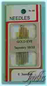Igły mają złocone ucha i łagodnie zakończone, wyoblone czubki.