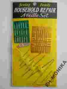 Igły ręczne karnet z krzywą igłą, nawlekacz -18szt