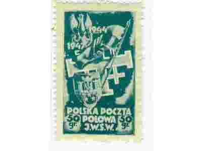 ZNACZEK CZYSTY WYDANY PRZEZ WYDZIAŁ OPIEKI NAD ŻOŁNIERZEM PRZY DOWÓDZTWIE WP NA ŚRODKOWYM WSCHODZIE W 1947 ROKU O NOMINALE 50 gr. STAN IDEALNY.