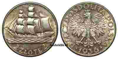 II RP, 2 zł 1936 statek, ok. menniczy #1, piękny !