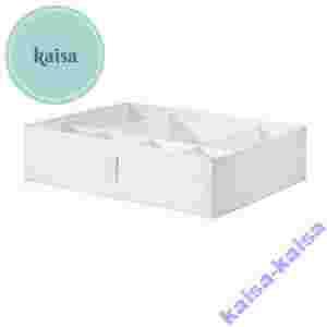 Wymiary pasują do obudowy szafy PAX o głębokości 35 cm i zawieszanych półek SKUBB z 6 przegrodami.