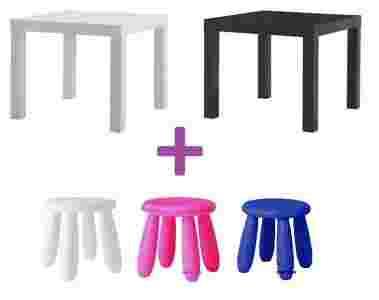 IKEA zestaw: stolik +2x taboret stołek MAMMUT LACK