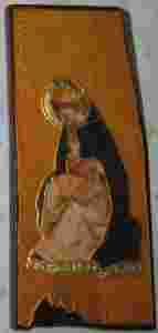 Jest to - starannie wykonane rękodzieło z wykorzystaniem różnorodnych technik złocenia (prawdziwe płatki złota) i współczesnej techniki transferu. Ikonka posiada delikatną linie spękań - co czyni ją niepowtarzalną i nadaje jej nieco patyny.