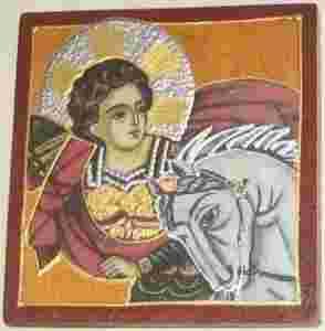 Ikonka przedstawia św. Jerzego, rycerza i wojownika.