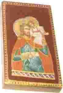 Ikonka przedstawia św. Krzysztofa z małym Jezusem na ramieniu.