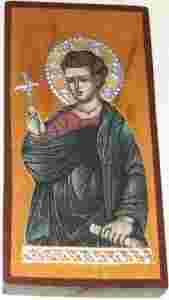 Ikonka piękna, bogato złocona i srebrzona przedstawia św. Tomasza Apostoła