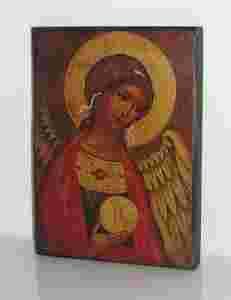 Przedmiotem aukcji jest współcześnie wykonana kopia ikony przedstawiającej Anioła Stróża (ros. Angieł Chranitiel). Wizerunek znajduje się na desce oraz na podkładzie gipsowo - klejowo - kredowym.