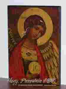 Wszystkie nasze ikony stylizowane są na stare, na ogół pokryte złoceniami i spękaliną. Deski często zostają "surowe", a politury lub podkłady celowo nierówne, aby stwarzały wrażenie starości. Do wykonania ikon użyto wysokiej jakości farb, werniksów, wosków, pokostów i złoceń. Technika wykonania: transfer-malowanie-złocenia-postarzenia (transfer - odbitka farby z szablonu, malowanie po transferze, złocenia farbami lub płatkami złota lub szlagmetalem, stylizowanie ikony na starą). Na życzenie mogę dosłać e-mailem zbliżenia fragmentów i tyłów poszczególnych ikon.