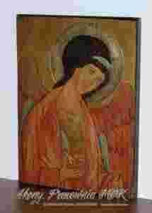 Wszystkie nasze ikony stylizowane są na stare, na ogół pokryte złoceniami i spękaliną. Deski często zostają "surowe", a politury lub podkłady celowo nierówne, aby stwarzały wrażenie starości. Do wykonania ikon użyto wysokiej jakości farb, werniksów, wosków, pokostów i złoceń. Technika wykonania: transfer-malowanie-złocenia-postarzenia (transfer - odbitka farby z szablonu, malowanie po transferze, złocenia farbami lub płatkami złota lub szlagmetalem, stylizowanie ikony na starą). Na życzenie mogę dosłać e-mailem zbliżenia fragmentów i tyłów poszczególnych ikon.
