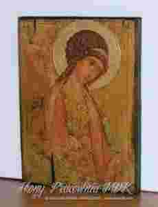 Wszystkie nasze ikony stylizowane są na stare, na ogół pokryte złoceniami i spękaliną. Deski często zostają "surowe", a politury lub podkłady celowo nierówne, aby stwarzały wrażenie starości. Do wykonania ikon użyto wysokiej jakości farb, werniksów, wosków, pokostów i złoceń. Technika wykonania: transfer-malowanie-złocenia-postarzenia (transfer - odbitka farby z szablonu, malowanie po transferze, złocenia farbami lub płatkami złota lub szlagmetalem, stylizowanie ikony na starą). Na życzenie mogę dosłać e-mailem zbliżenia fragmentów i tyłów poszczególnych ikon.