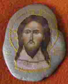 Ikonka znajduje się na owalnym i nieco nieregularnie ukształtowanym kamieniu