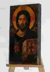 Przedmiotem aukcji jest współcześnie wykonana kopia ikony Chrystusa Pantokratora. Wizerunek znajduje się na desce oraz na podkładzie gipsowo - klejowo - kredowym.