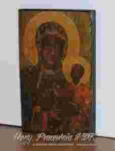 Przedmiotem aukcji jest współcześnie wykonana kopia ikony Matki Bożej. Wizerunek znajduje się na desce oraz na podkładzie gipsowo - klejowo - kredowym.