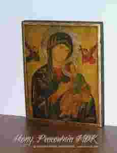 Przedmiotem aukcji jest współcześnie wykonana kopia ikony Matki Bożej Nieustającej Pomocy. Wizerunek znajduje się na desce oraz na podkładzie gipsowo - klejowo - kredowym.