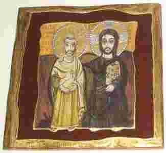 przedstawia Chrystusa i opata Menasa w geście przyjaźni.