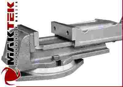 Imadło maszynowe wykonane z żeliwa z gładkimi, hartowanymi i szlifowanymi klockami szczękowymi. Imadło skrętne z podziałką 360°.