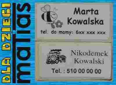 Dzięki informacją zawartym na etykietce - twoje rzeczy na pewno szybko się odnajdą, a zpewnością nie będą szukały INNEGO WŁAŚCICIELA ;) .
