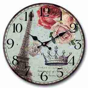 Piękny zegar z motywem wiezy Eifla, róz i korony królewskiej.