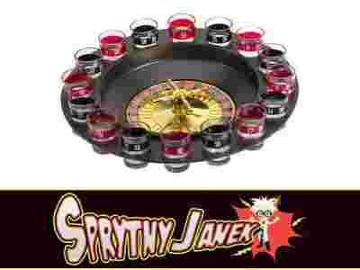 Zestaw zawiera: 16 szklanych kieliszków, aż 60 żetonów, koło ruletki, 2 metalowe kulki, grabki krupiera, filcową matę.