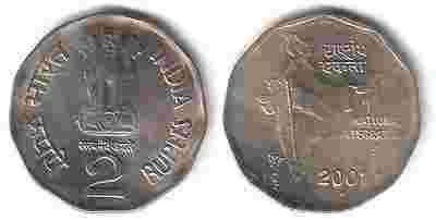 INDIA 2 RUPEES 2001 r. UNC /5997AV/
