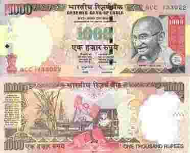 Indie 1000 Rupees P-new 2010 stan I UNC