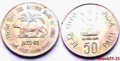 INDIE 50 PAISE 1985 ZWIERZĘTA LEW MENNICZA